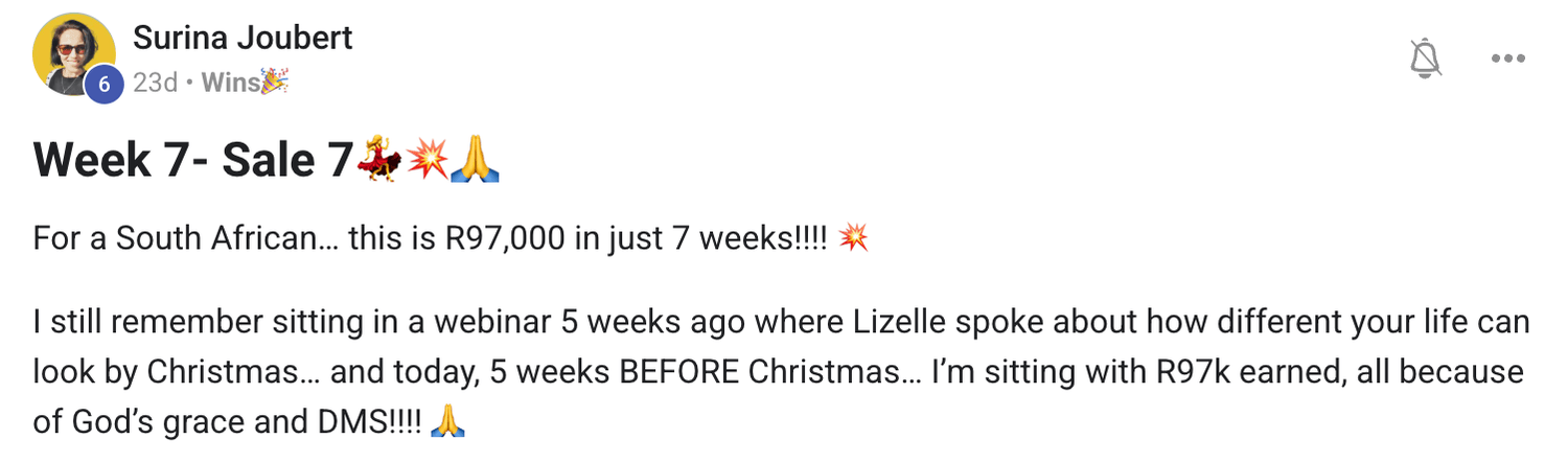 "Since implementing what we're taught in DMS. Engagement and views has been picking up and now interests are becoming sales again!"