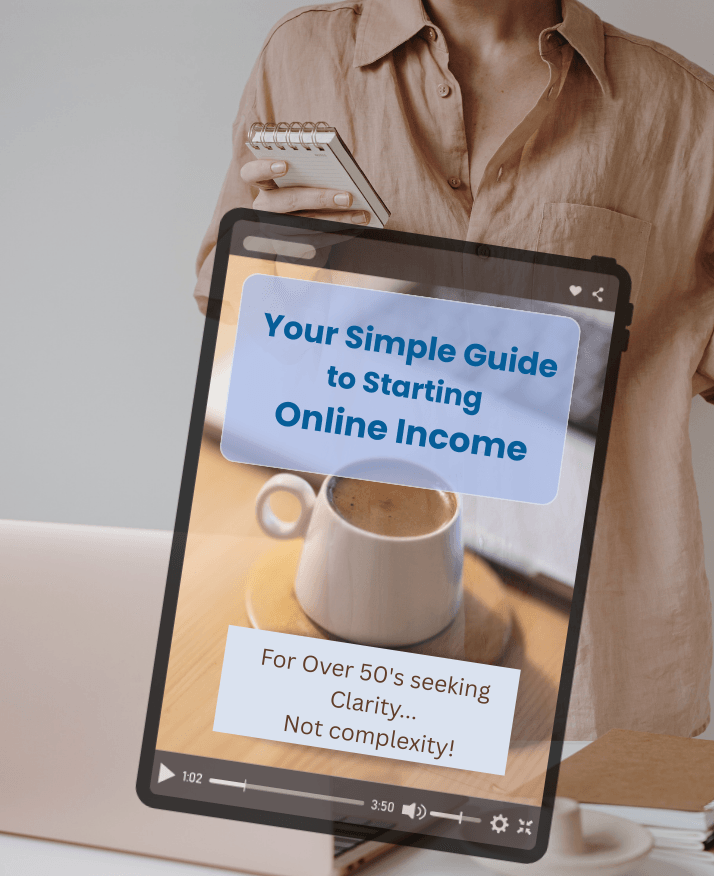 This guide gently shows women over 50 how to explore online income without pressure, hustle, or burnout — giving you clarity, confidence and a calm first step forward.
